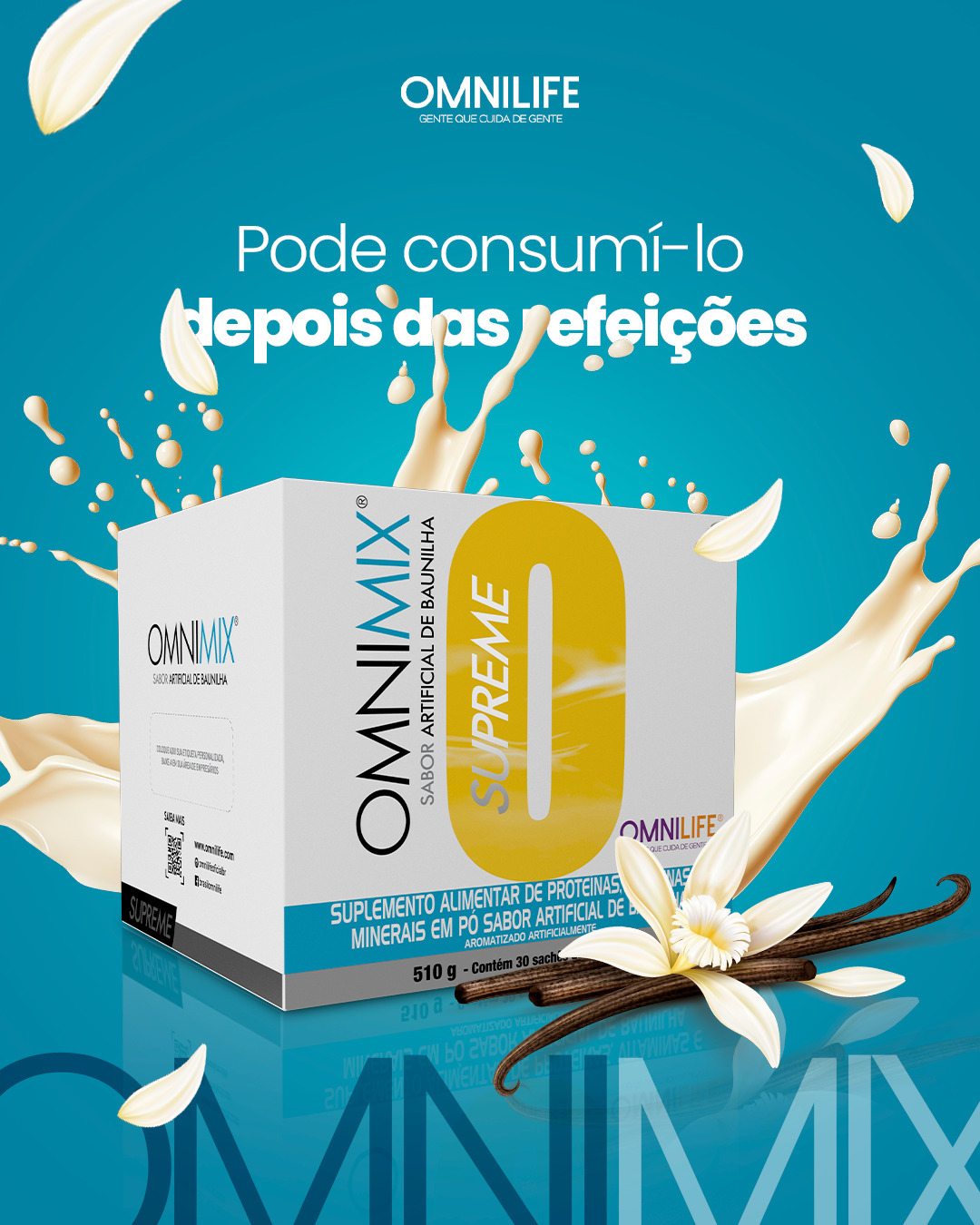 Omnimix Supreme da Omnilife é uma mistura nutricional com sabor de baunilha e soja, desenvolvida para elevar os valores nutricionais e a imunidade.
